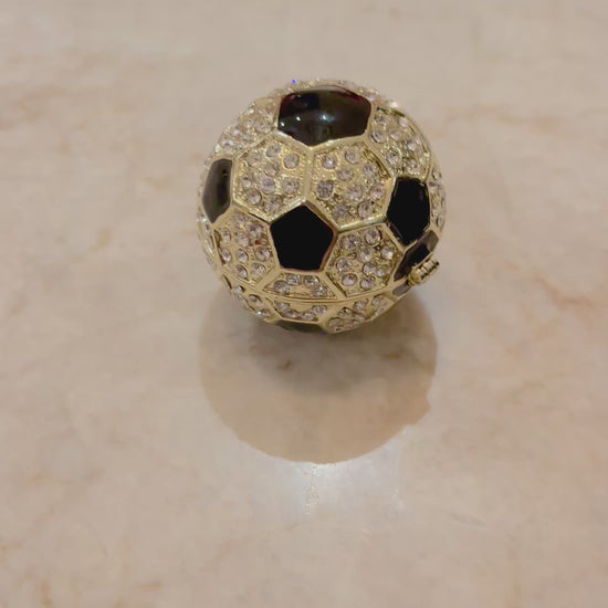 New Limited Edition 14K Gold Plated Soccer Treasure Box/Smart Device Cable Holder Jeweled with Austrian Crystals