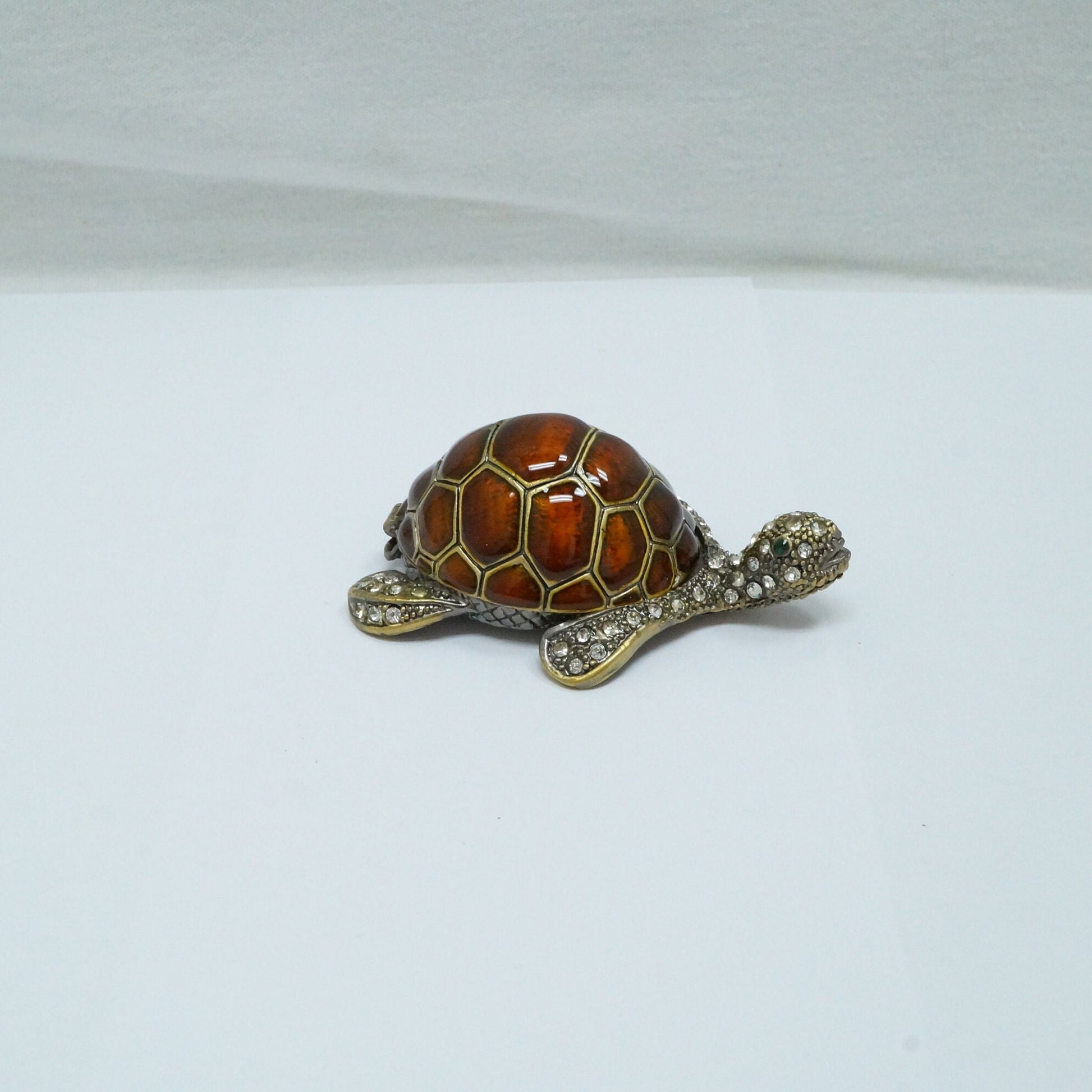 Cristiani Collezione Brown with Silver Crystal Jeweled Turtle Pewter Enameled Trinket Box