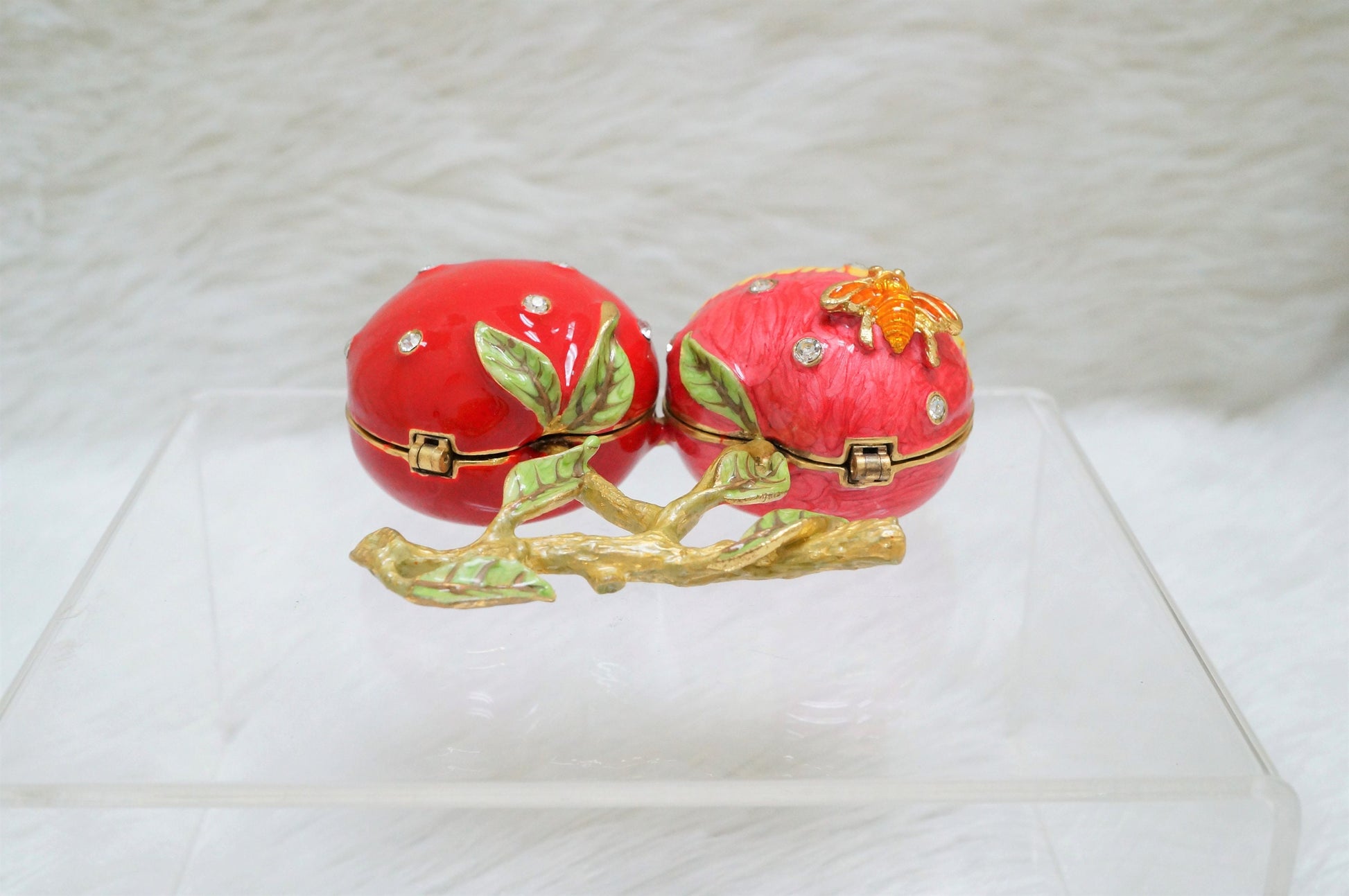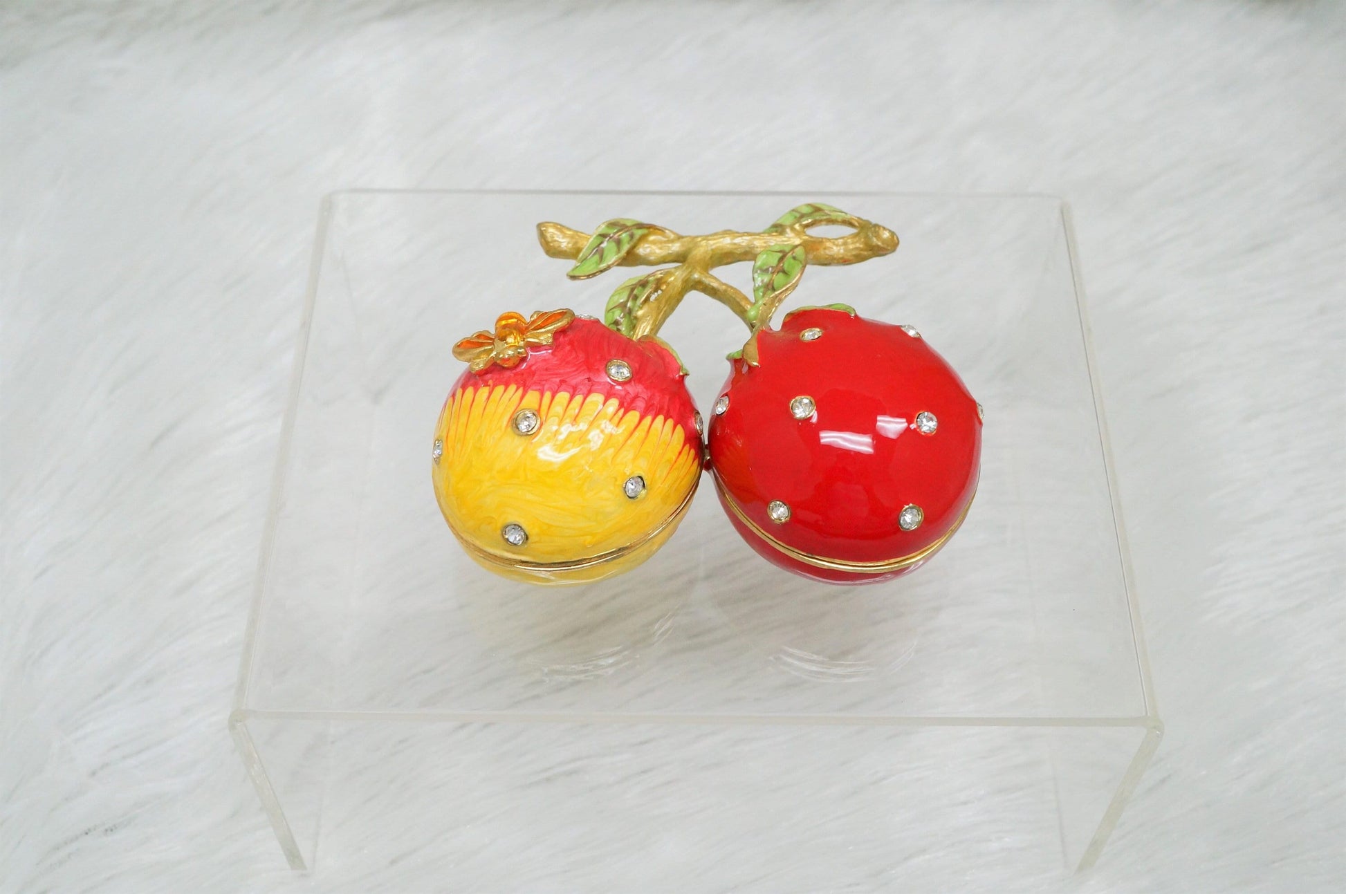 Cristiani Collezione Cherries Shaped Trinket Box Pewter Enameled 14K Gold Plated