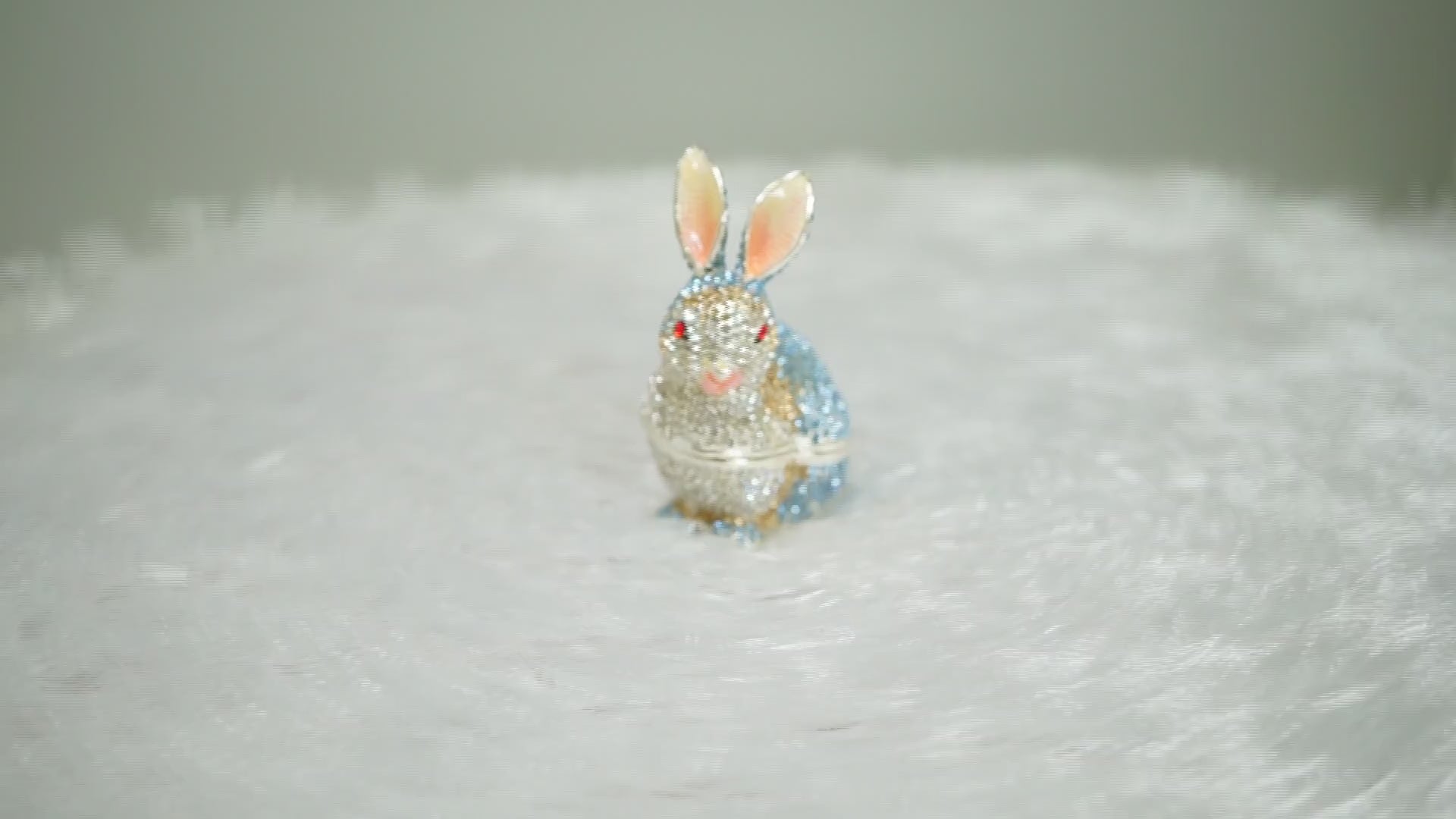 This is sparkling rabbit keepsake box is hand crusted with more than 1000 crystals.