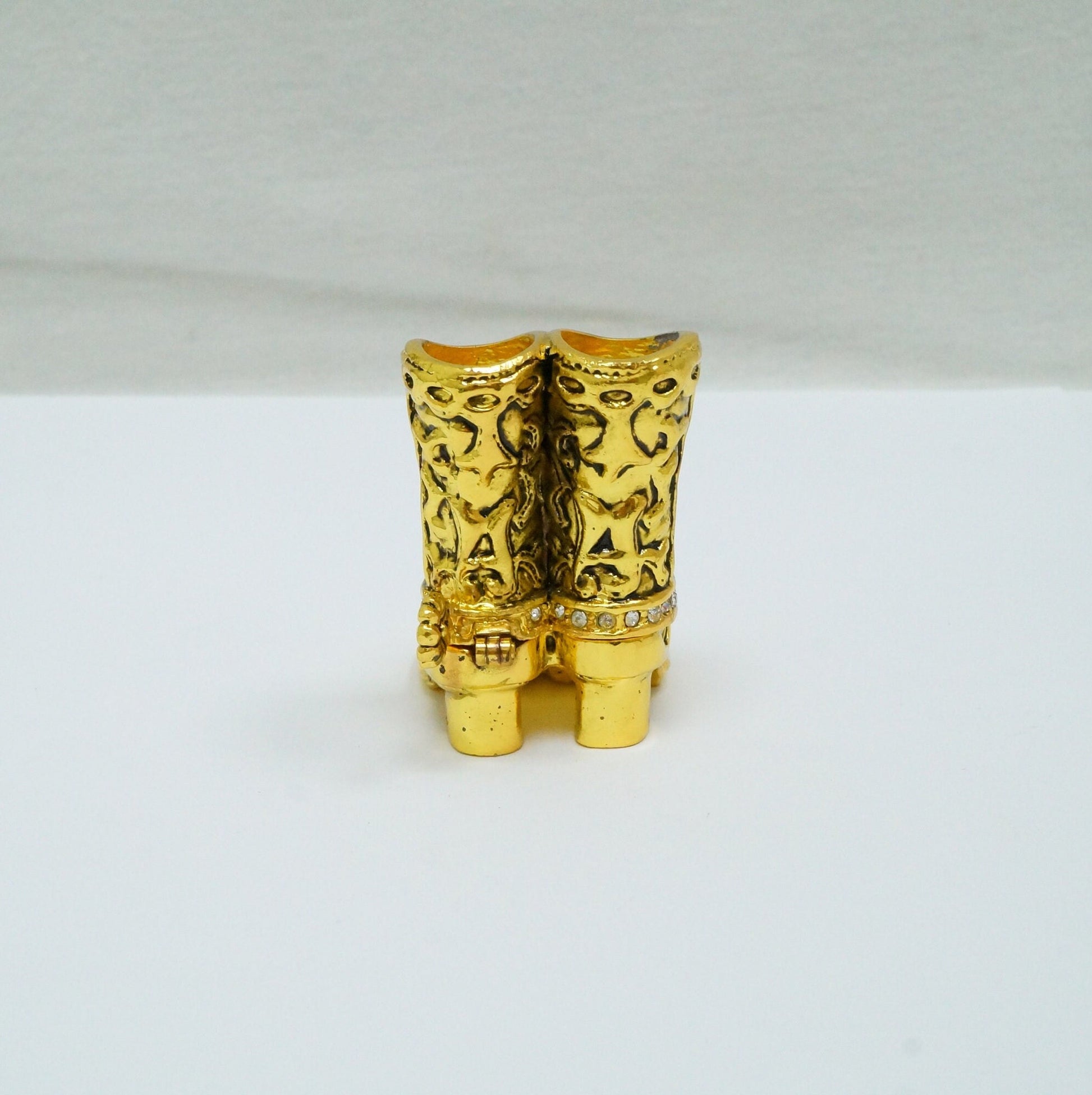 Cristiani Collezione Gold Toned Western Cowboy Boots Jeweled Pewter Trinket 14K Gold Plated