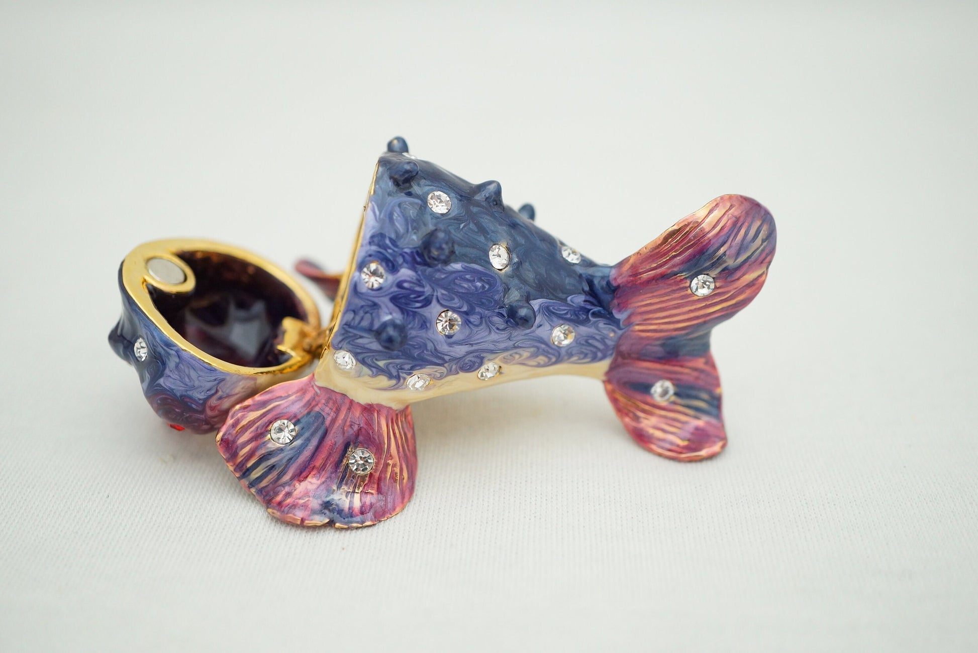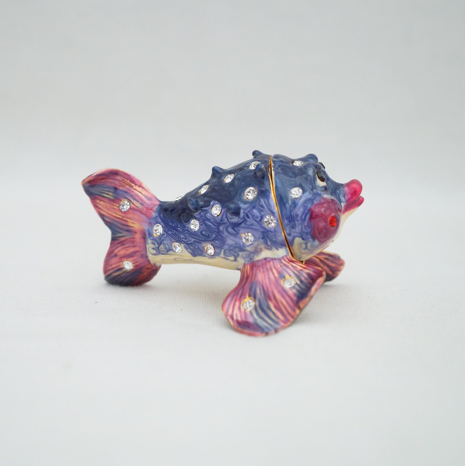 Cristiani Collezione Puffer Fish Trinket Box Pewter Jeweled Enameled 14K Gold Plated