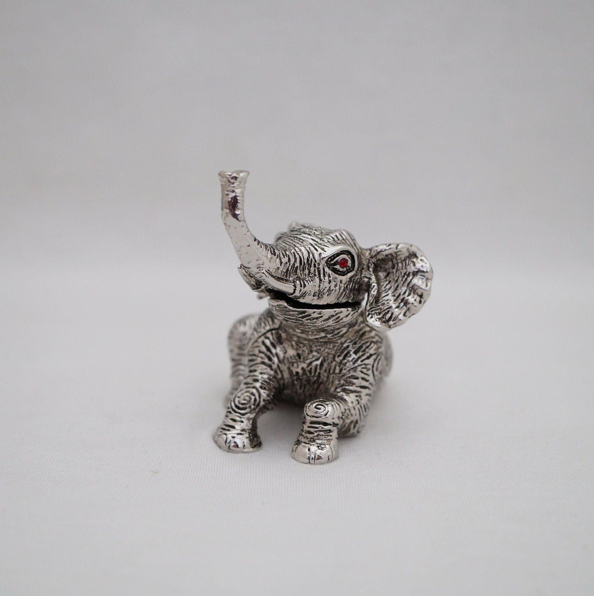 Cristiani Collezione Vintage Silver Sitting Elephant Trinket Box Pewter