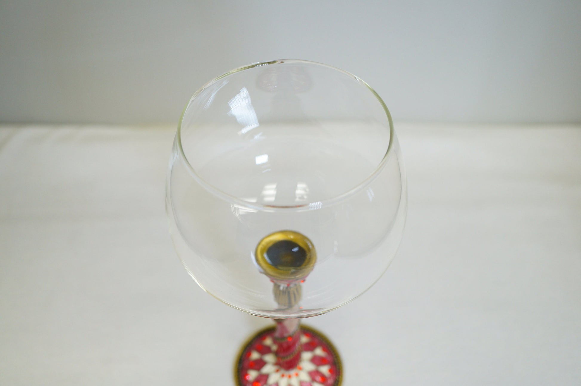 Cristiani Collezione Wine Glass with Decorative Pewter Stem Base 14K Gold Plated