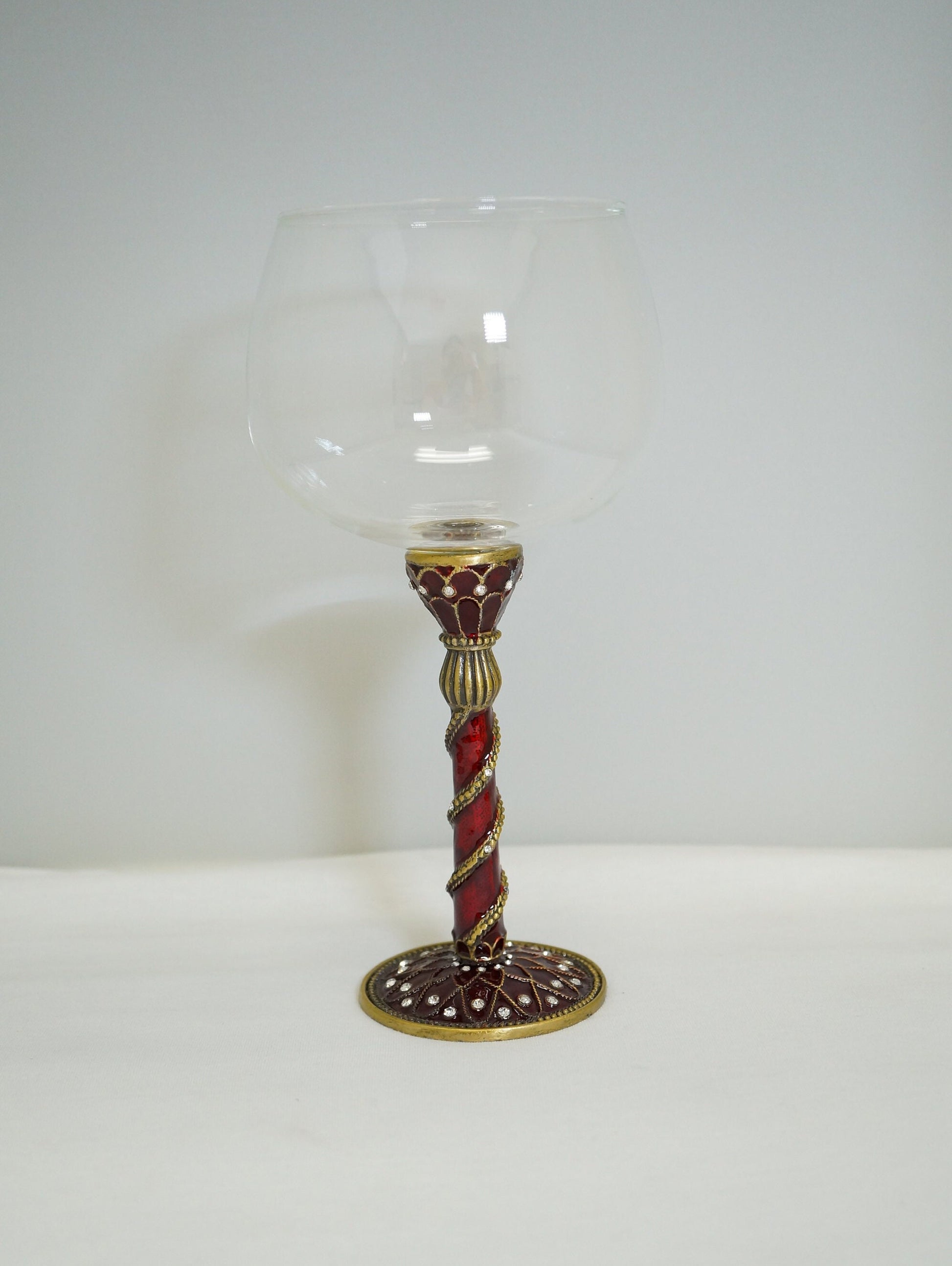 Cristiani Collezione Wine Glass with Decorative Pewter Stem Base.