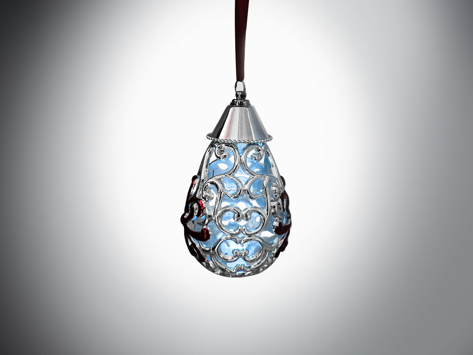 Discover the artistry of this limited edition tree ornament, where expert craftsmanship meets contemporary design. The lustrous chrome finish creates a sophisticated focal point for your holiday display, while integrated lighting cycles through captivating color transitions that dance within the ornament's interior. Each handcrafted piece stands as a singular creation, delivering the refined elegance and distinctive character that distinguishes a curated collection. Perfect for those who appreciate quality and exclusivity in their seasonal décor.