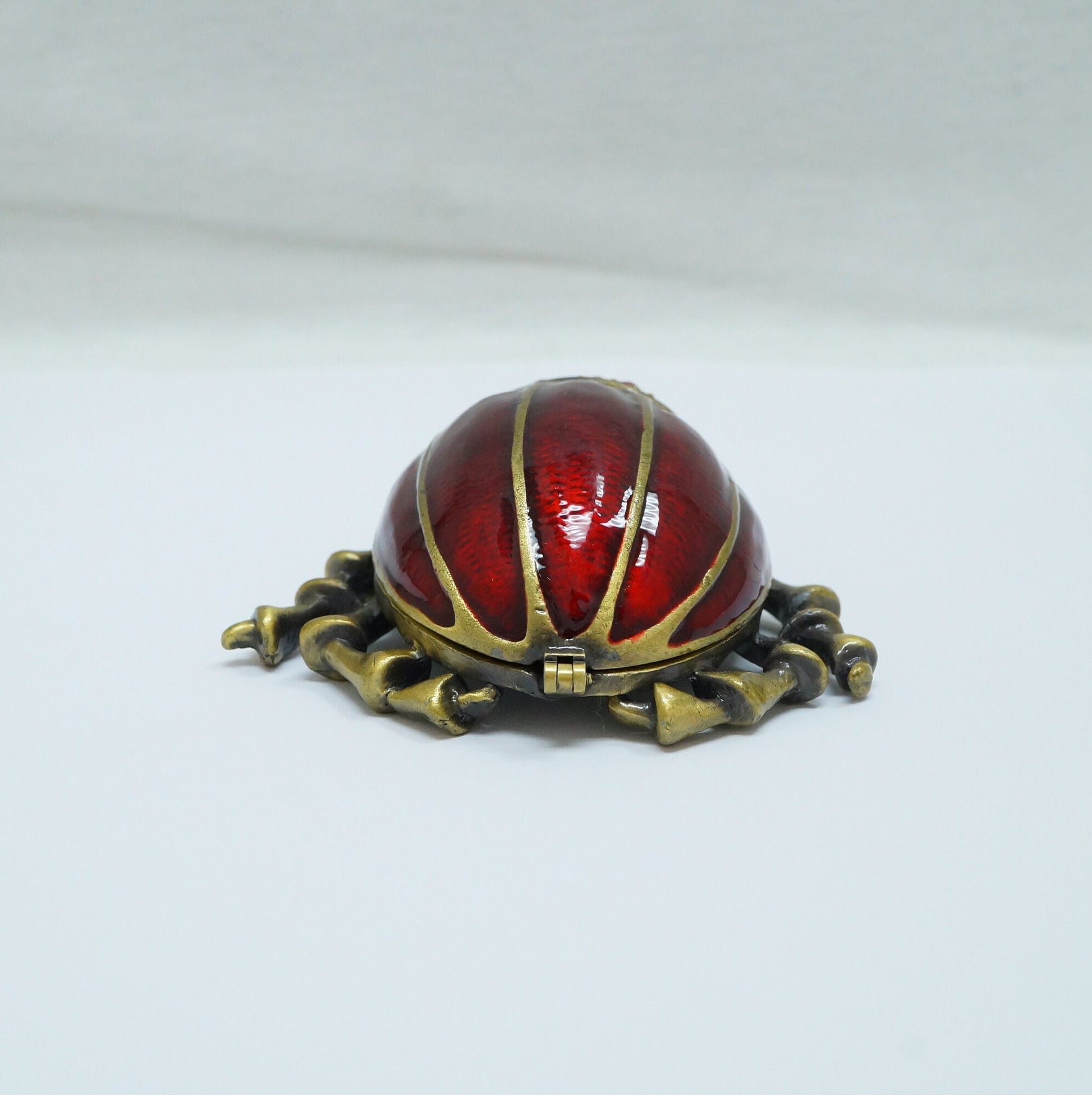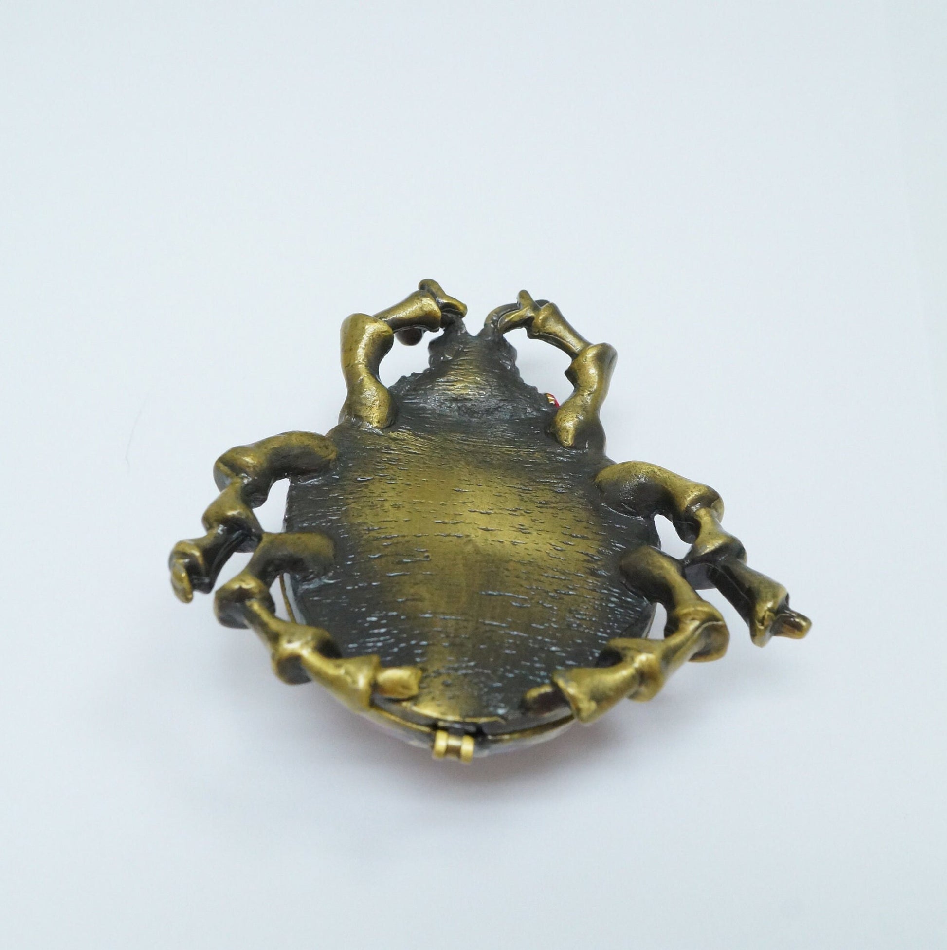 Vintage Bronze Red Beetle Bugs with Pink Green Jeweled Pewter Trinket