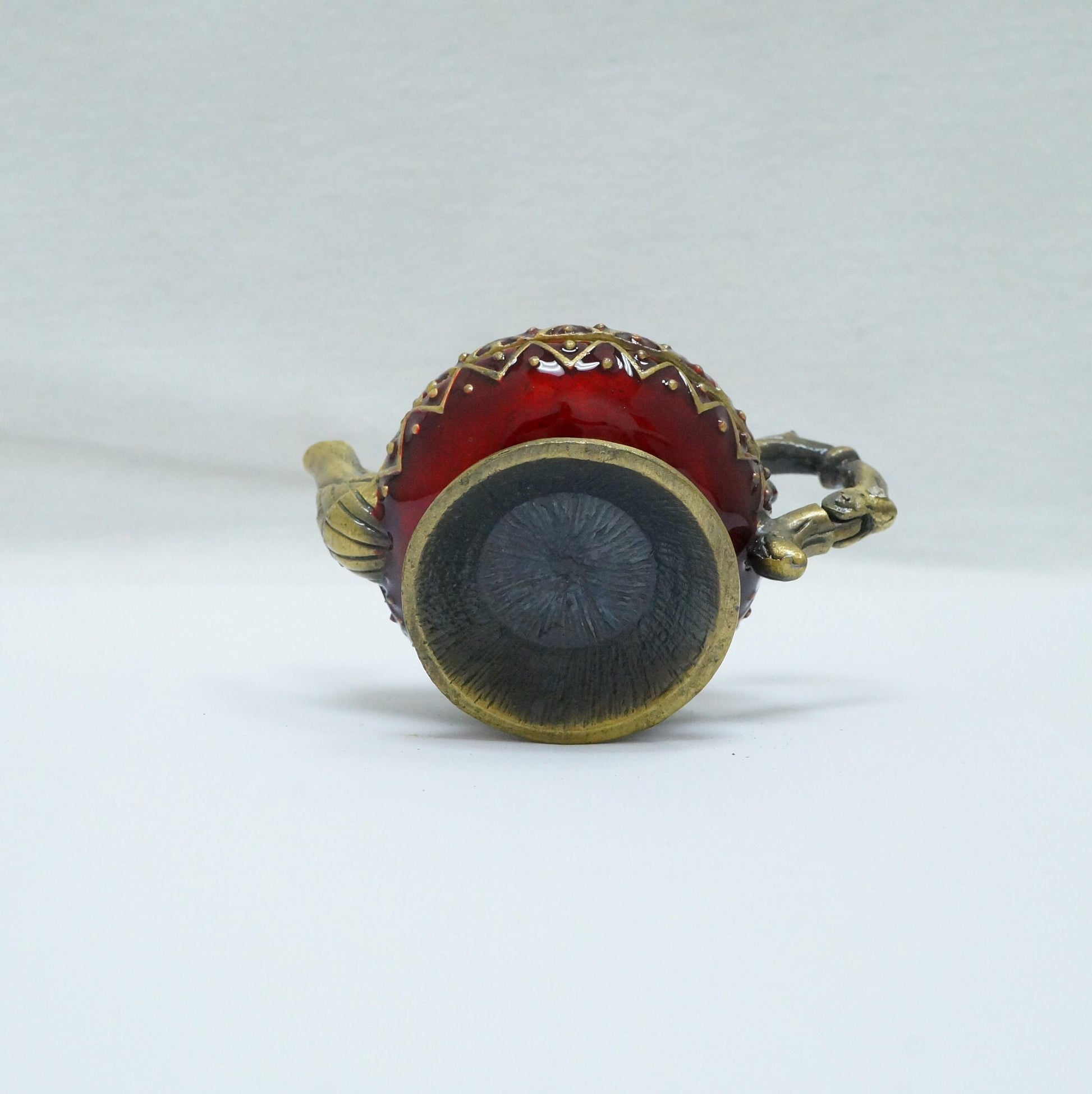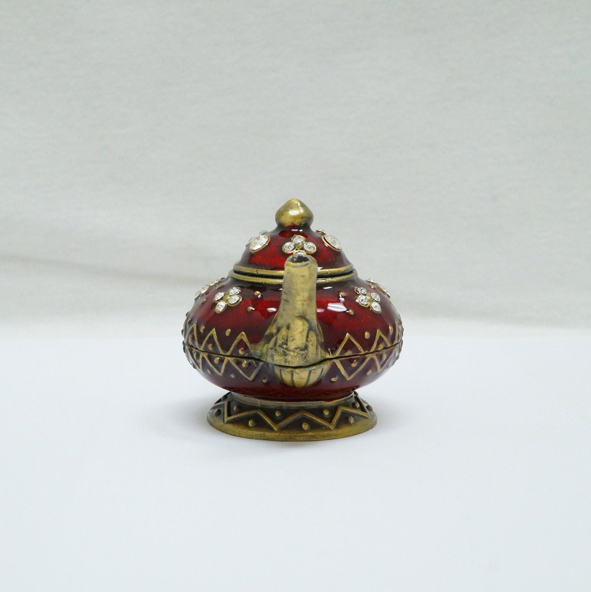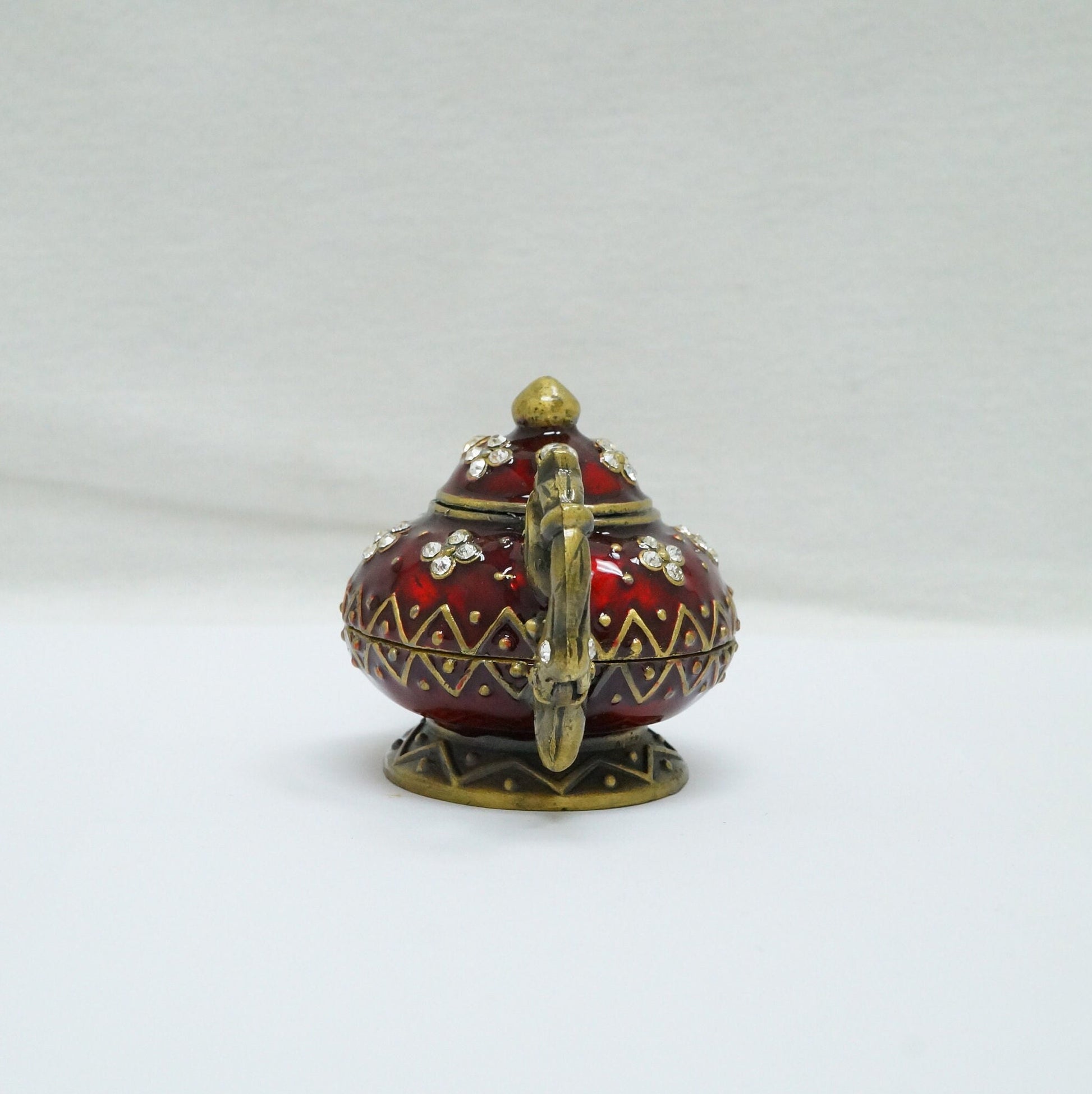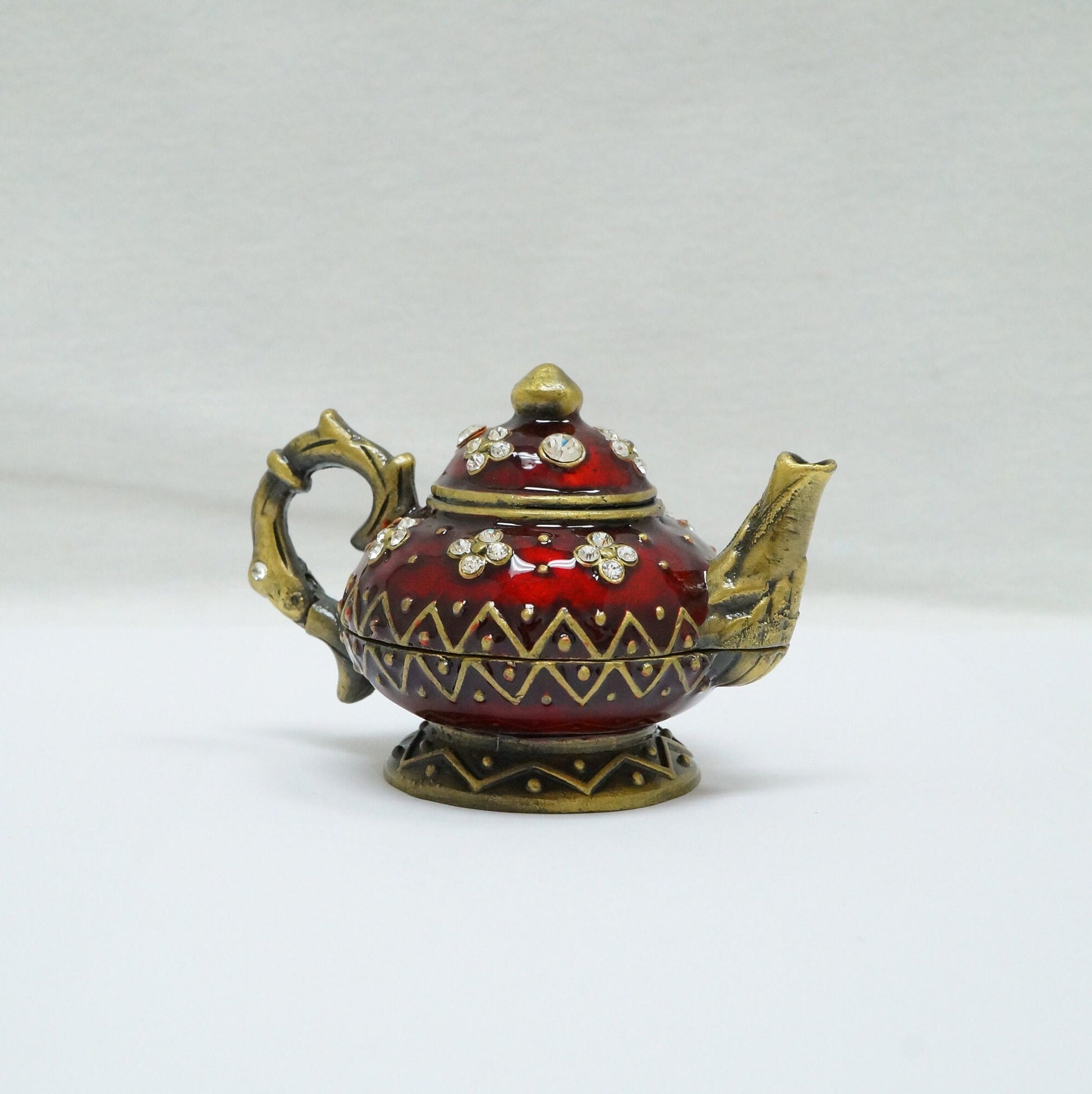Vintage Burgundy Bronze Floral Jeweled Teapot Pewter Trinket 14K Gold Plated