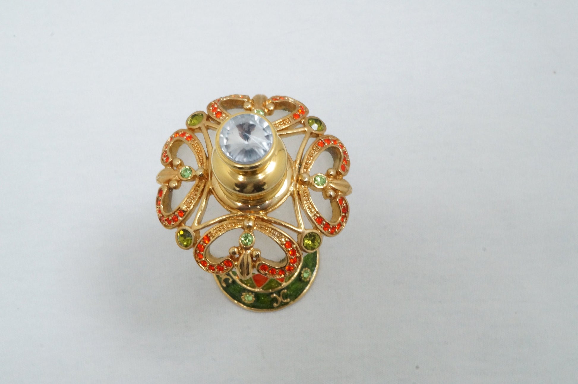 Bottle made with glass and pewter. Designs are hand painted and hand jeweled with crystals.
