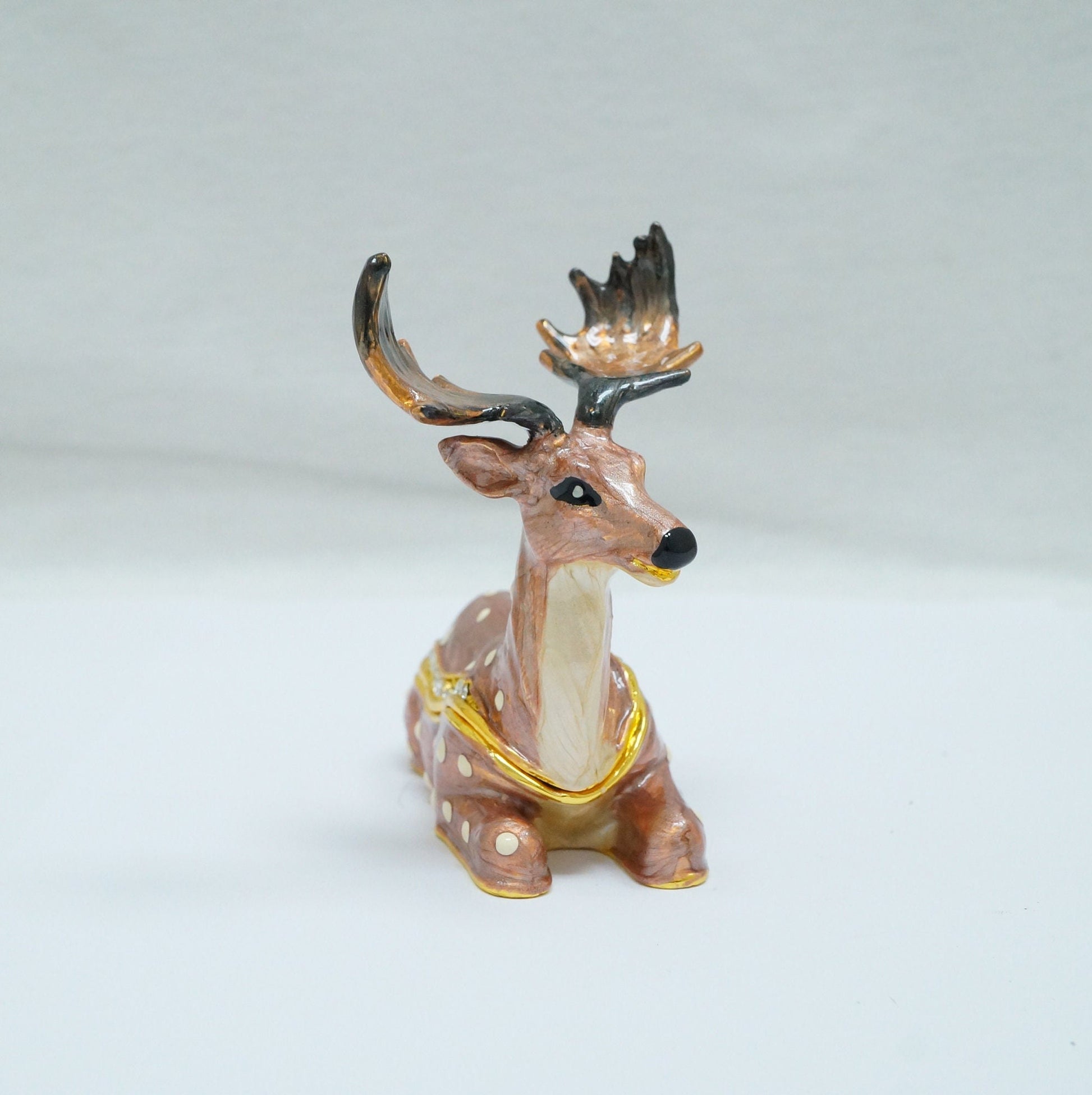Vintage Fallow Deer Jeweled Pewter Trinket 14K Gold Plated