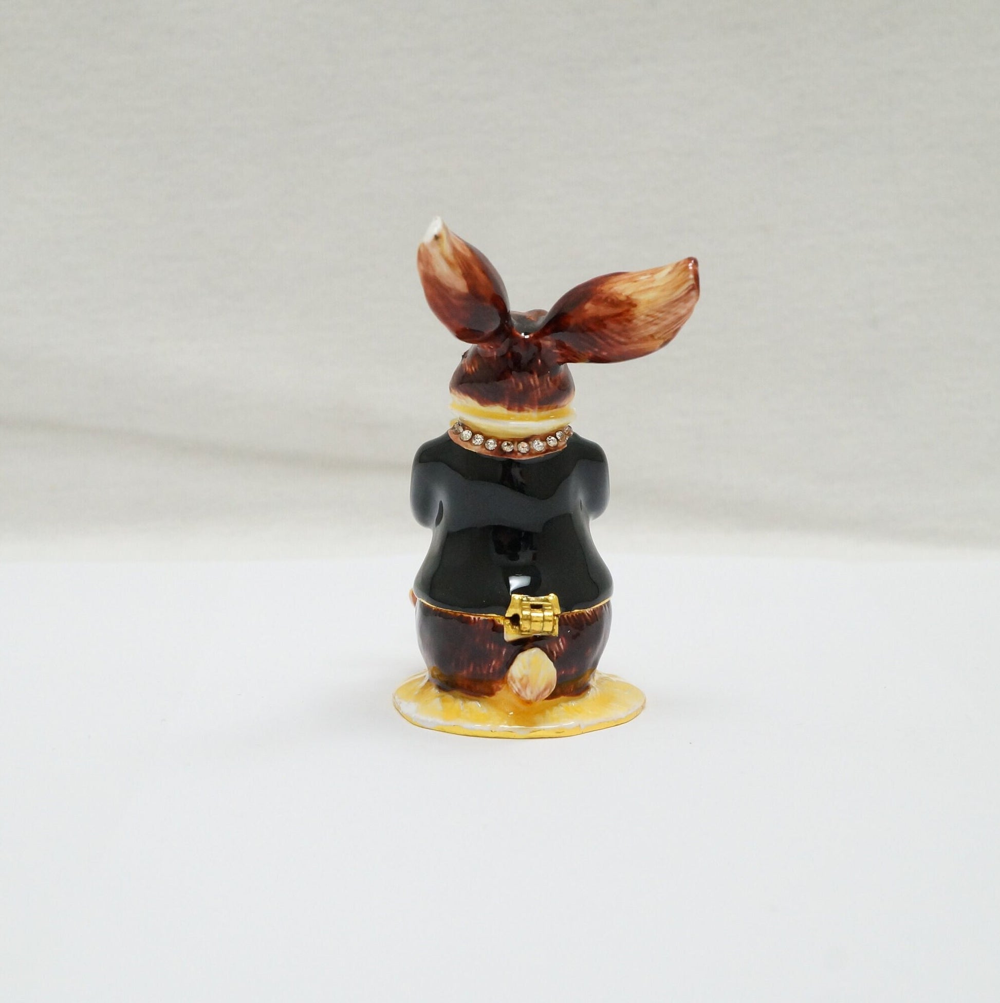 Vintage Rabbit playing the Saxophone Jeweled Pewter Trinket 14K Gold Plated