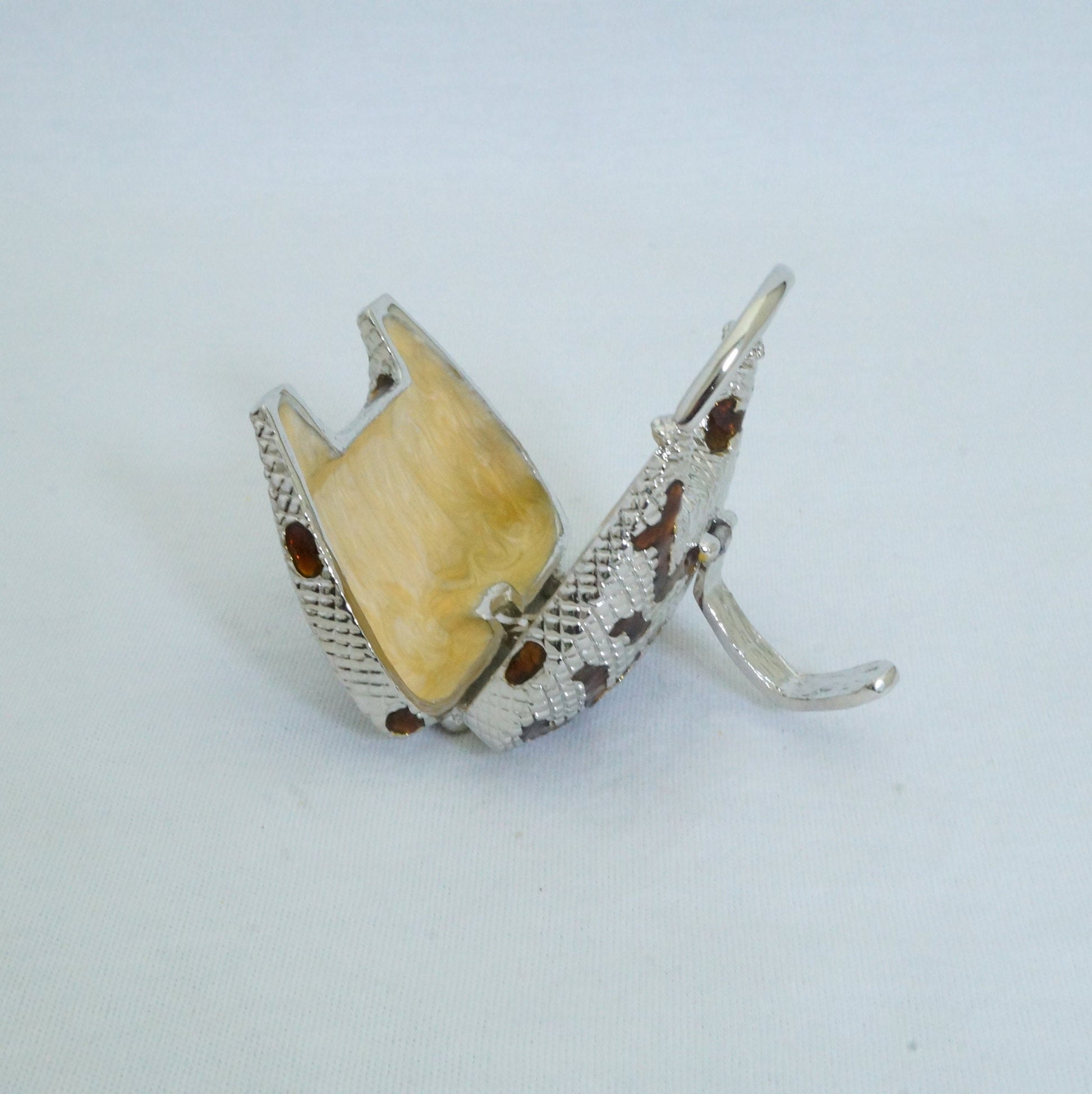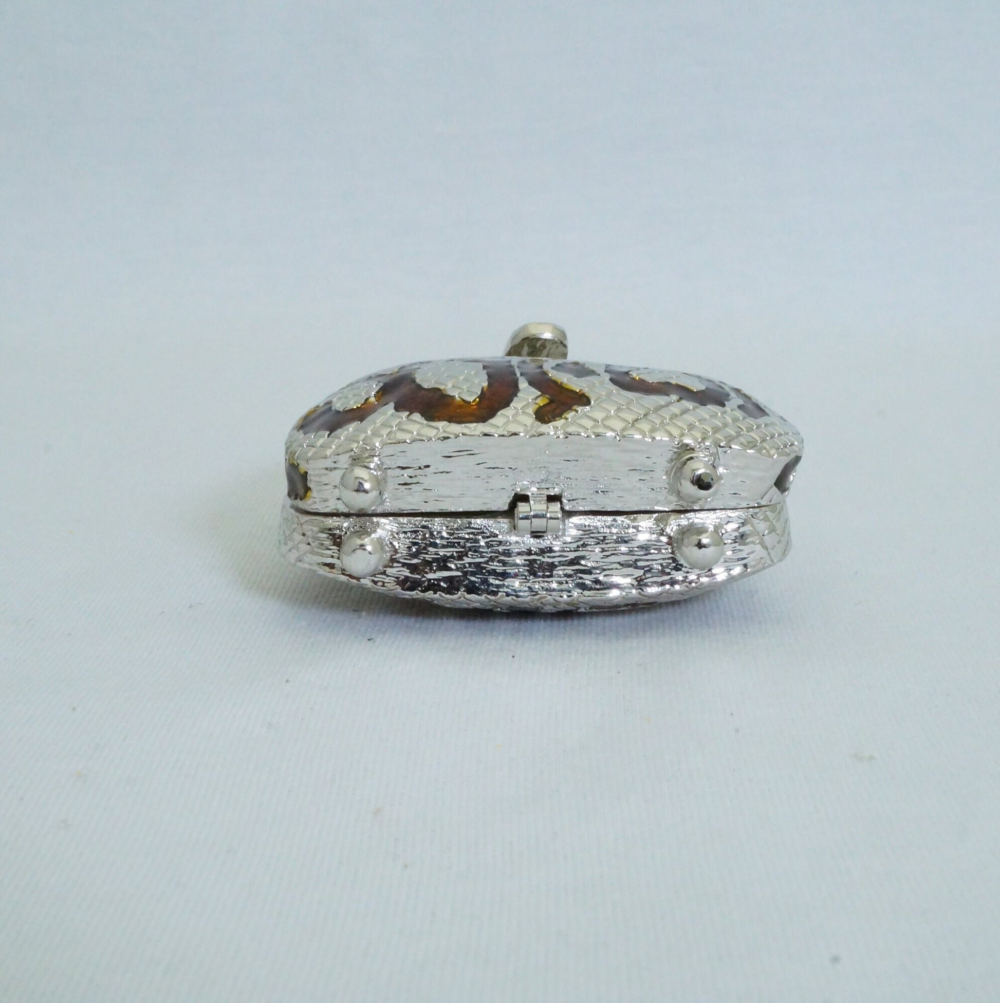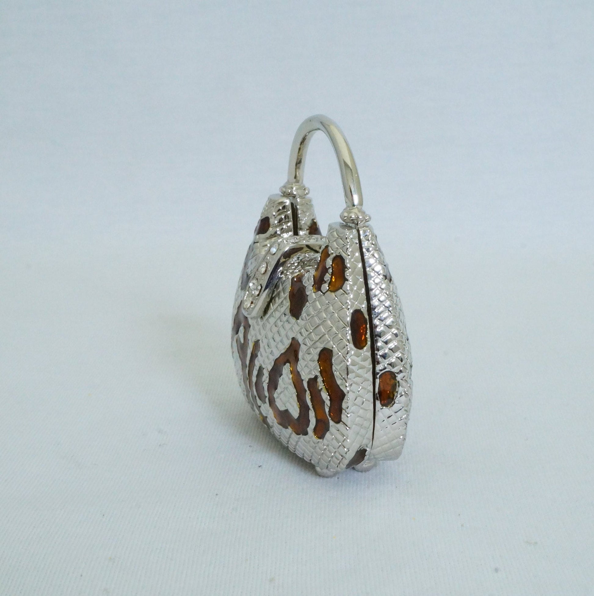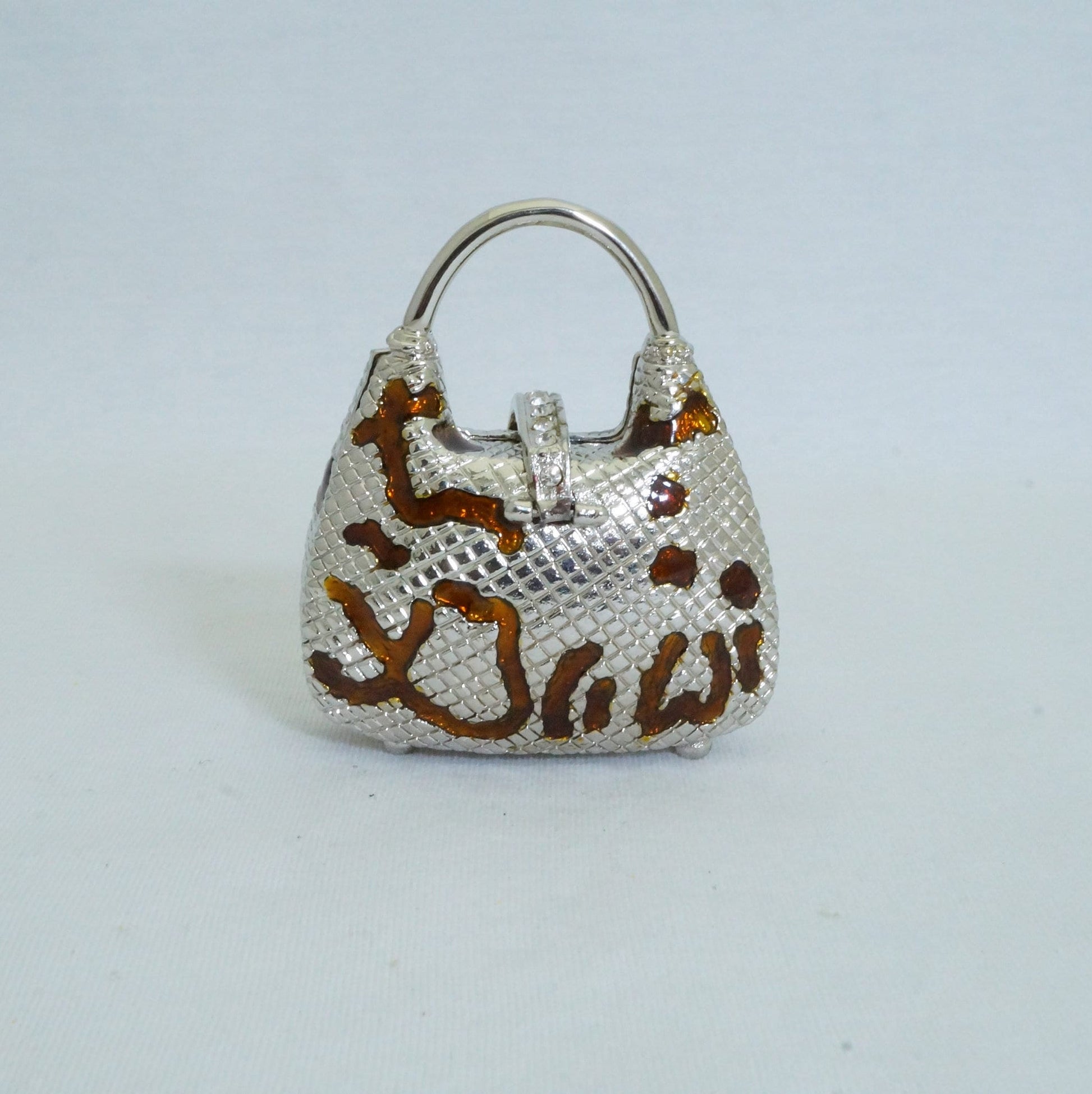 Vintage Silver Brown Handbag Trinket Box Pewter Jeweled Enameled