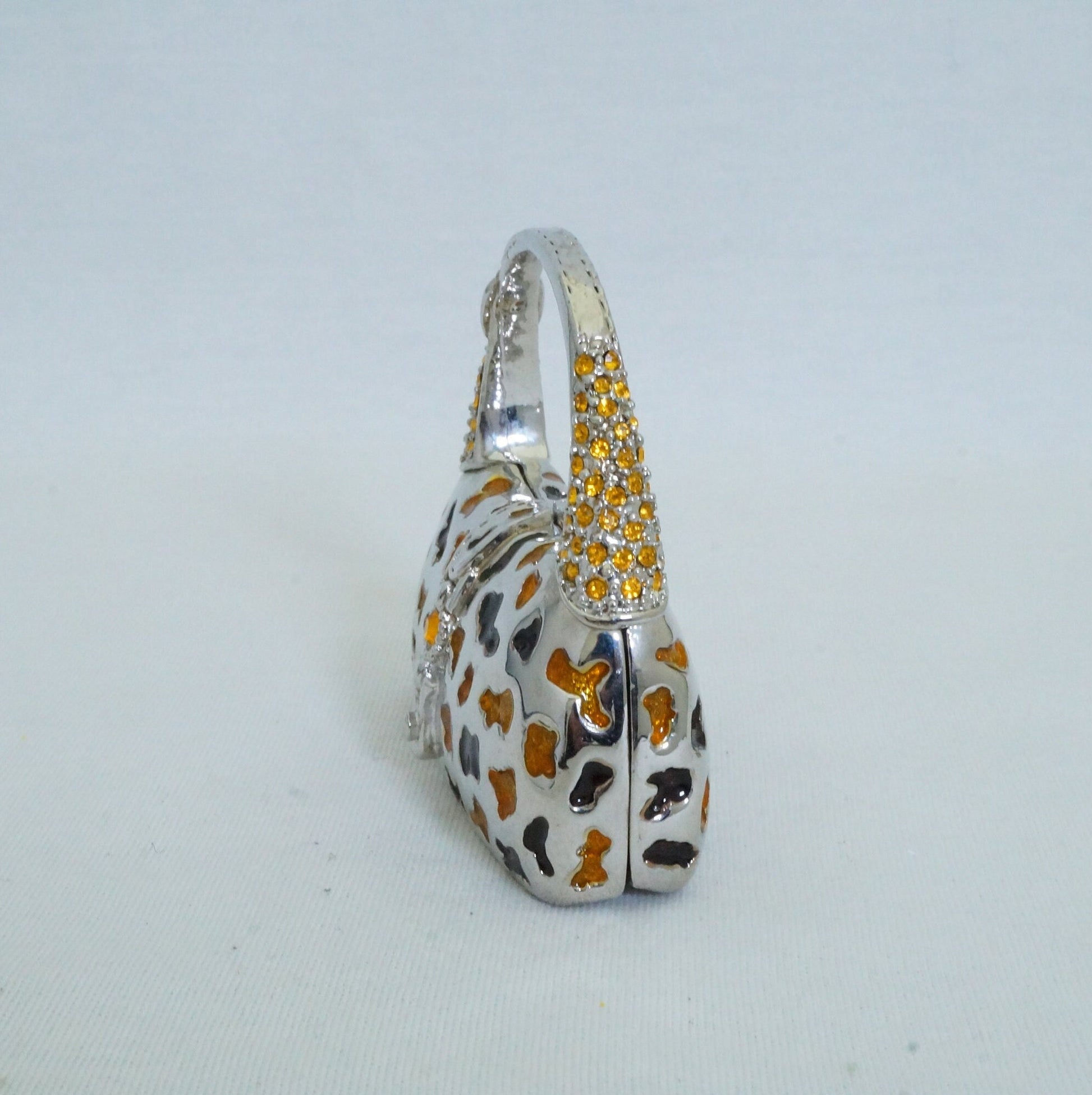 LAST PIECE - Vintage Silver Gold Brown Handbag Trinket Box Pewter Jeweled Enameled