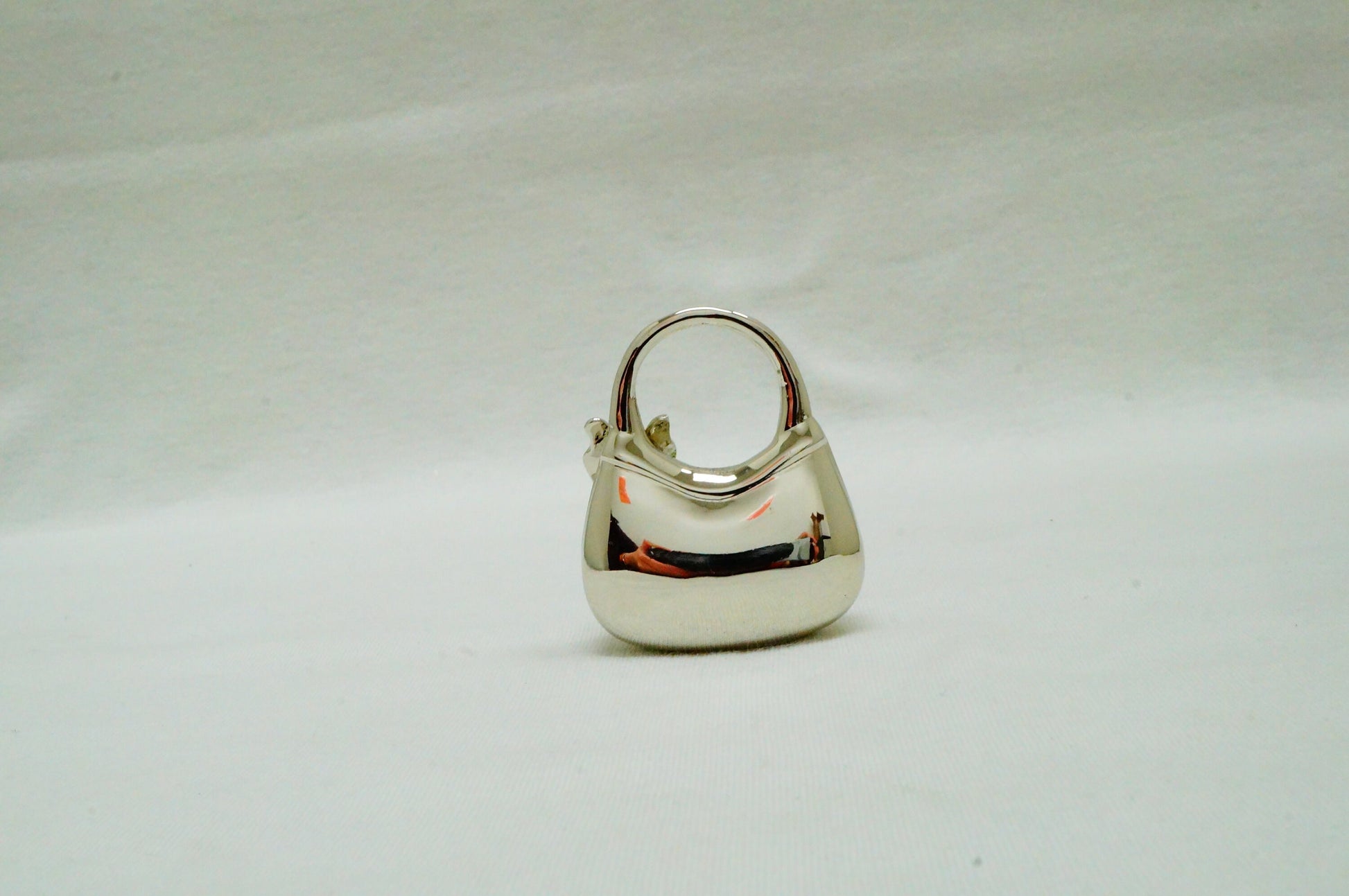 Vintage Silver Toned Mini Handbag Trinket Box Pewter Jeweled Enameled