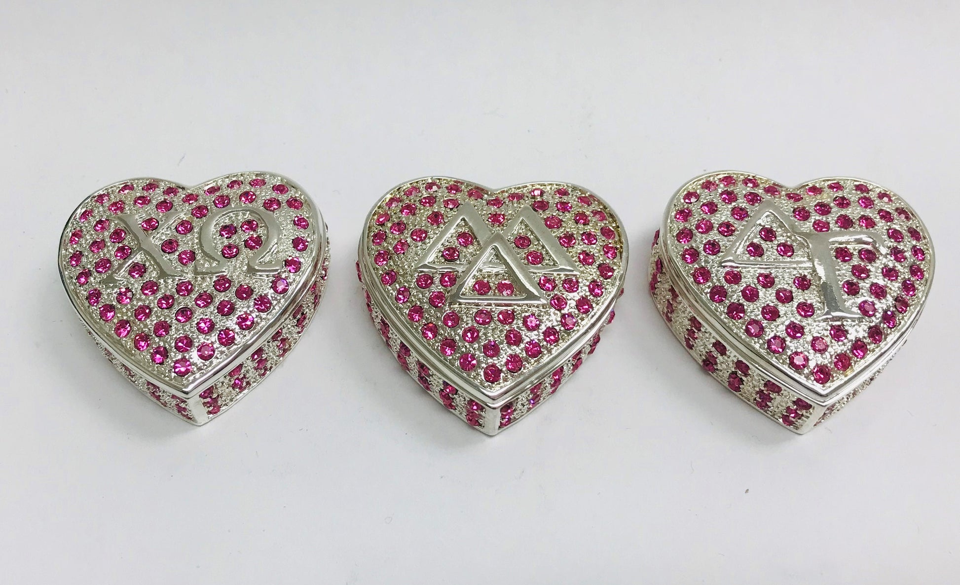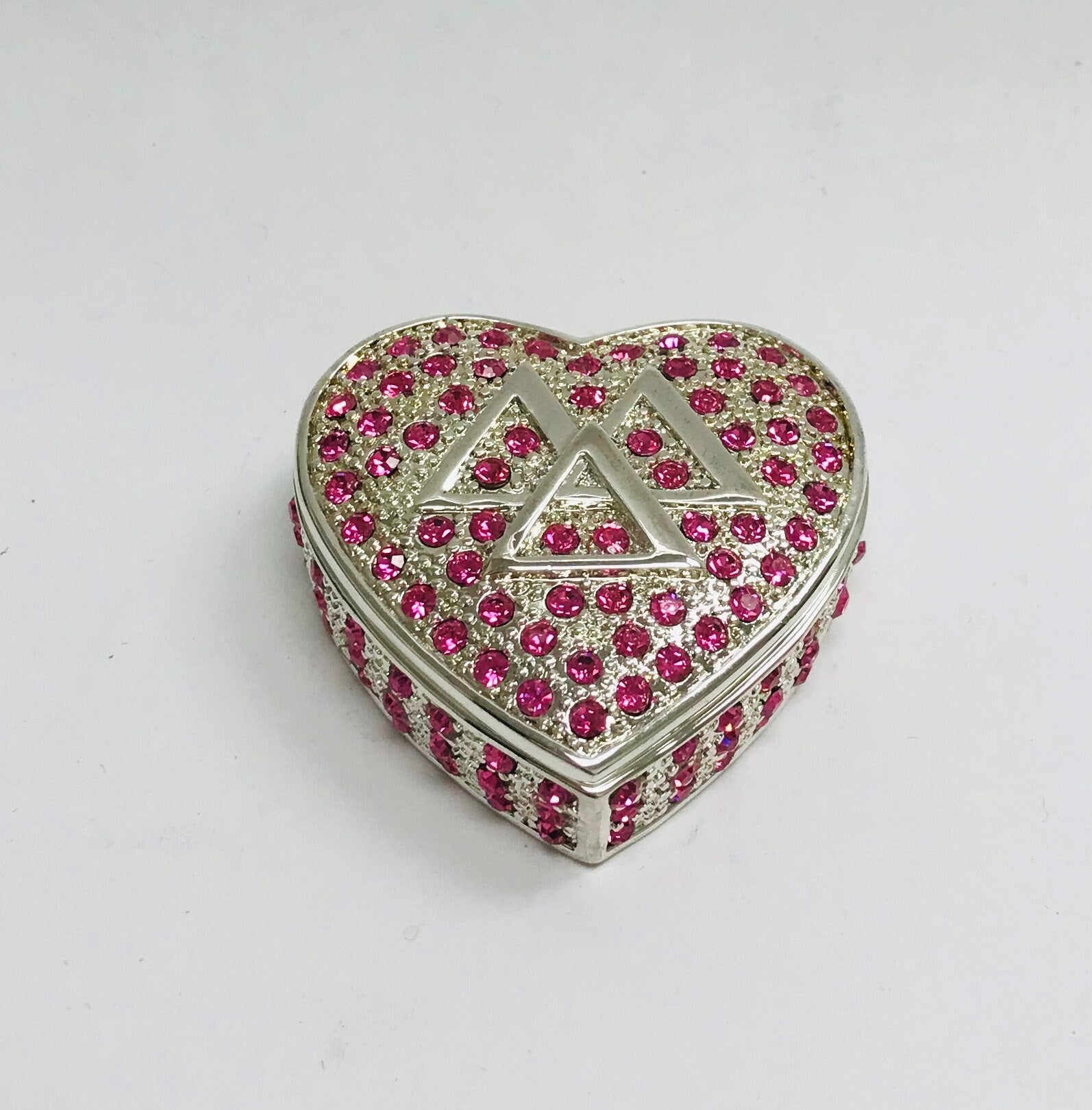 Vintage sorority heart trinket can be used to store small items. It perfect for a keepsake gift.