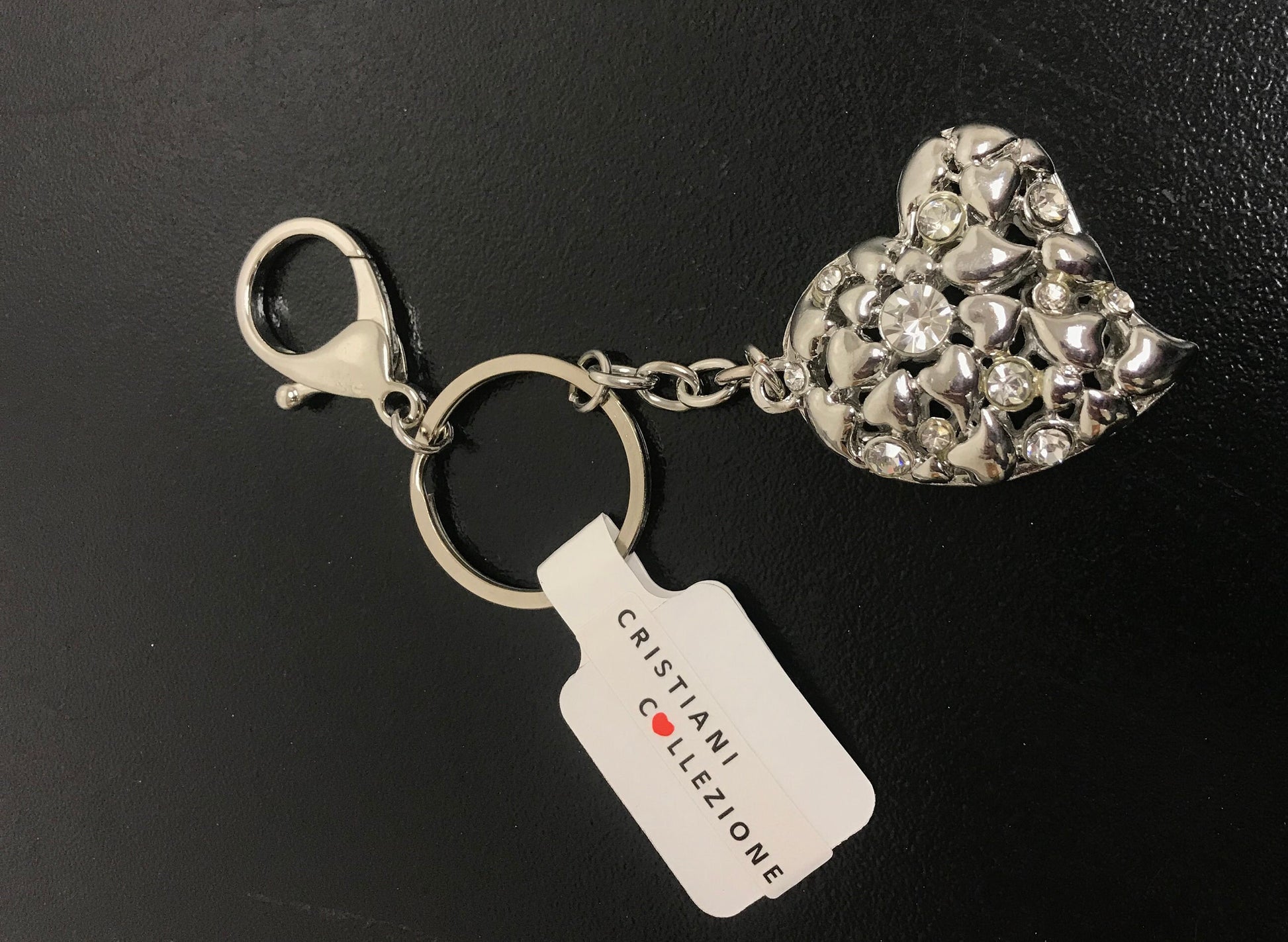 These cute keychain are made out of metal and accented with crystal.
